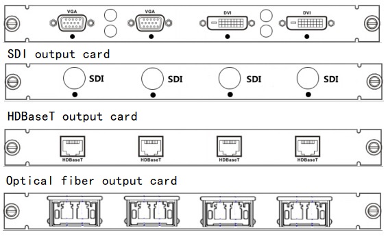 ⊙ Hybrid output card (4 optional interfaces, CVBS, VGA, YPbPr, HDMI, DVI, SDI)