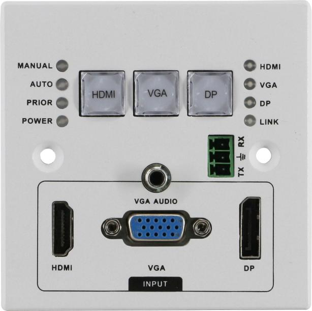 86型HDMI+DP+VGA墻插發(fā)射器 HDBaseT地插發(fā)射器 HDBaseT桌插發(fā)射器 北京華創(chuàng)視通生產(chǎn)廠家;能夠?qū)⑤斎氲腍DMI、DP、VGA信號,以及一路音頻信號,轉(zhuǎn)換成標(biāo)準(zhǔn)的HDBaseT信號。本HDBaseT墻插發(fā)射器還支持POC供電,可以通過矩陣或者其他HDBaseT設(shè)備獲取電源,并支持RS232控制。