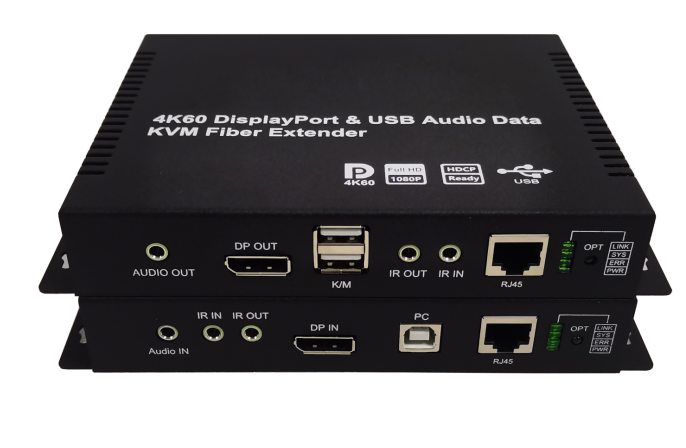 北京華創(chuàng)視通研發(fā)生產(chǎn)的4K60 DP KVM網(wǎng)線延長器,可通過6類(CAT6)或6類以上網(wǎng)線(CAT6A/7)產(chǎn)品支持點對點的連接方式,支持1路DP1.2視頻,1路3.5音頻,1路雙向紅外線傳輸,1路RS232雙向數(shù)據(jù),以及1路USB鍵盤鼠標(biāo)的KVM功能,可以通過USB鼠標(biāo)、鍵盤實現(xiàn)遠(yuǎn)程控制與管理,主要應(yīng)用于戶外廣告、投影融合、指揮中心KVM、研發(fā)保密系統(tǒng)及遠(yuǎn)程會議等。